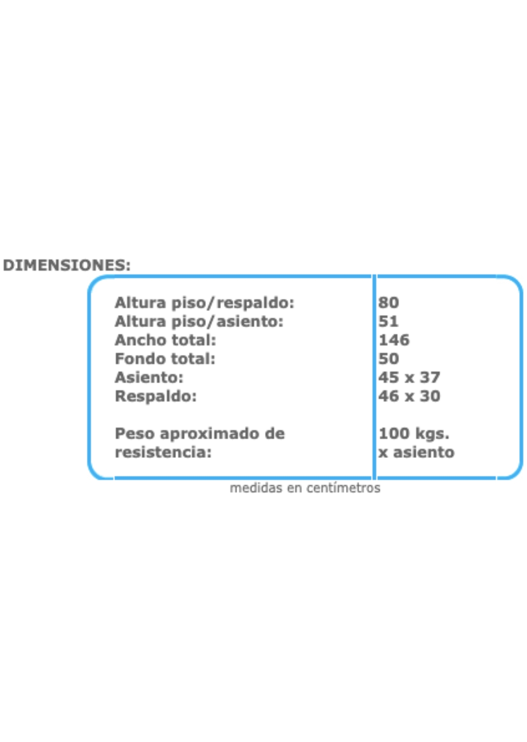 – 3 plazas de tubular redondo de 1” cal. 18, terminado en pintura epóxica texturizada color negro, tapones de polietileno en terminales para evitar rayaduras a pisos.