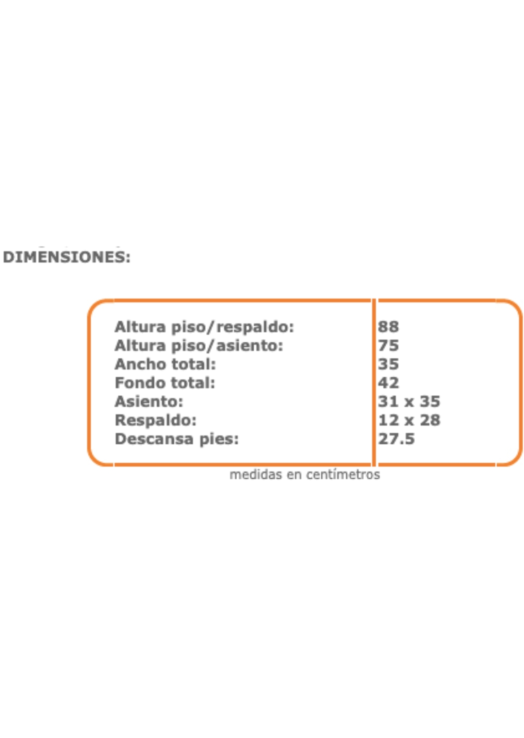 – En tubo redondo de 7/8″ cal. 18 en patas, tubo redondo de 5/8″ cal. 18 en descansa pies y solera de 1/8 x 1″, terminado en pintura epoxica, colores en negro y aluminio.