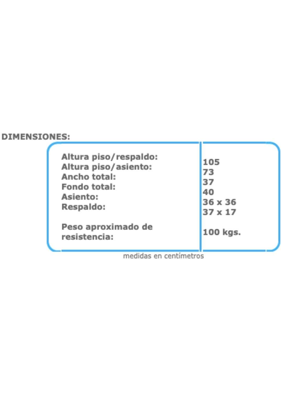 – Metálica en tubo de acero redondo de 1½” cal. 18 con refuerzo en asiento y descansa pies de tubo redondo de 3/4 cal. 18 y soporte en respaldo de tubo redondo de 5/8” cal. 18, terminado en pintura epoxica texturizada color negro o aluminio, tapones tipo bola en terminales.