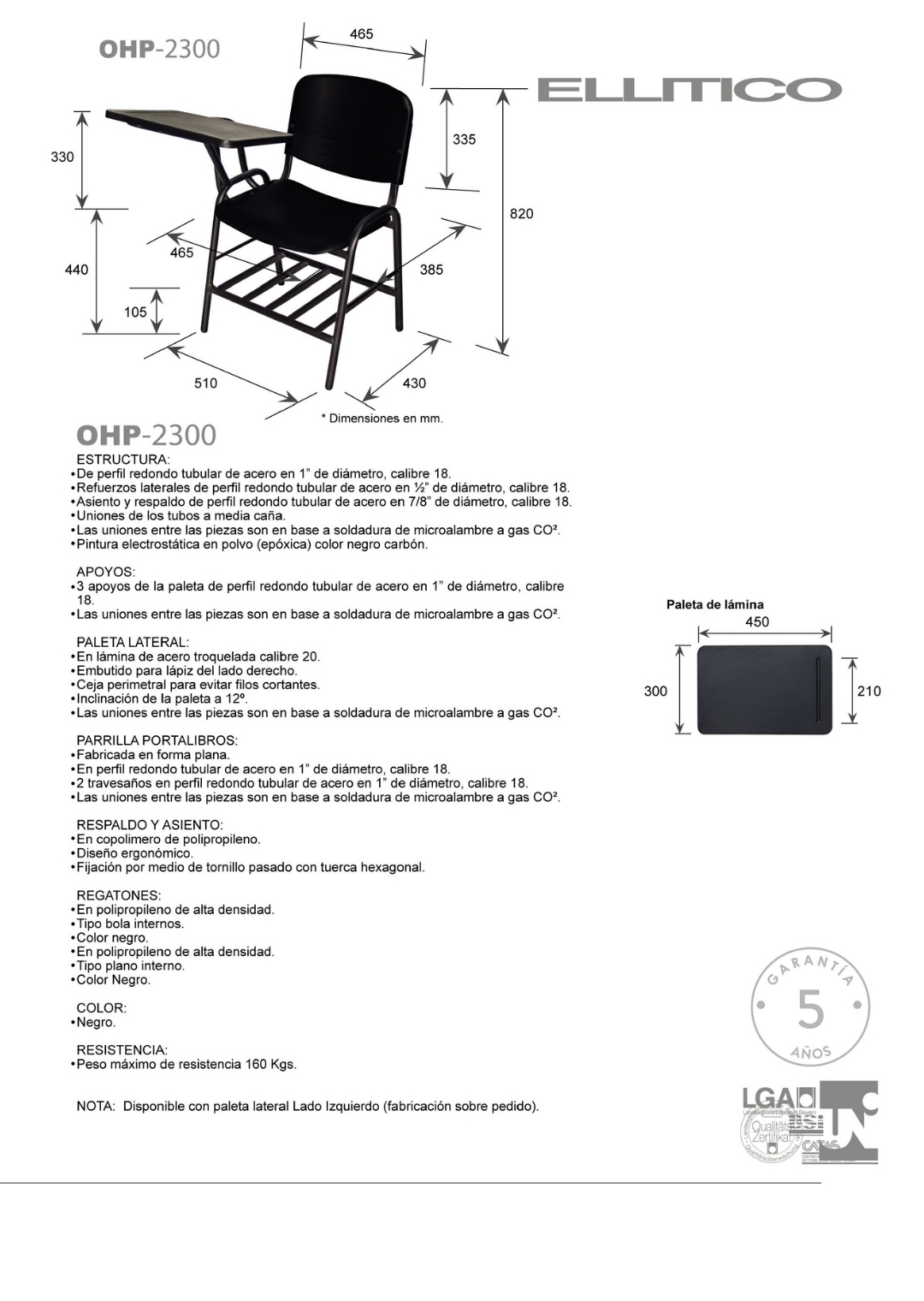 estructura: de acero tubular 1″ de diámetro, calibre 18; con acabado de pintura epóxica (electrostática) color negro.