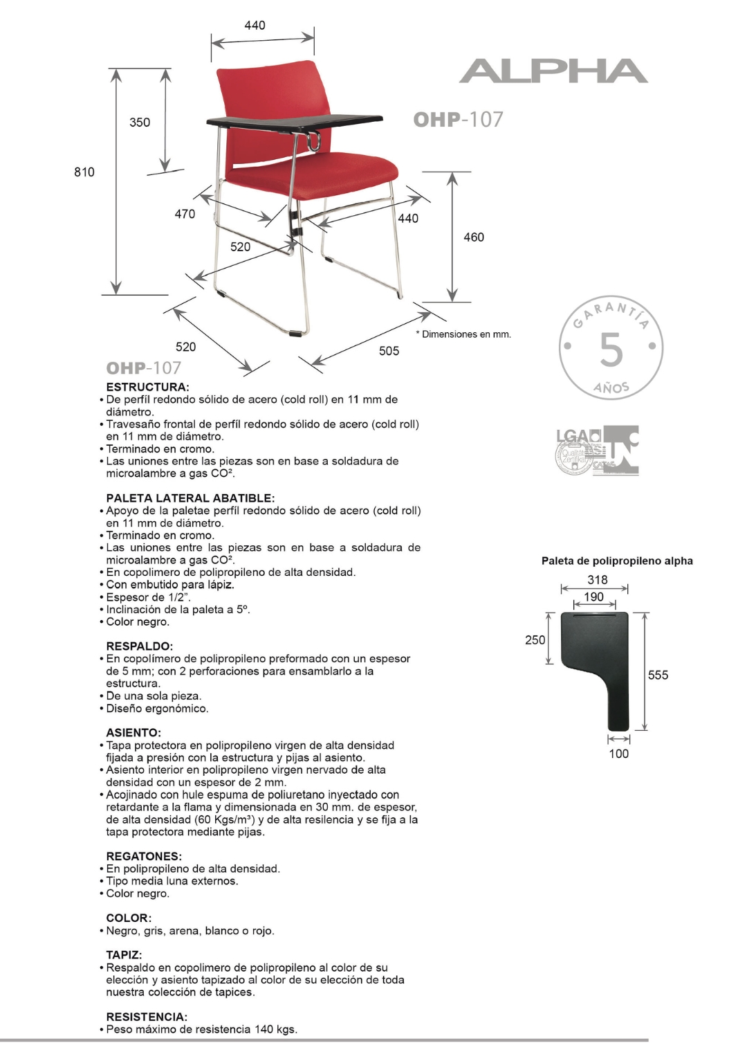 peso máximo de resistencia: 140 kgs. NOTA: disponible solamente con paleta lateral lado derecho.
