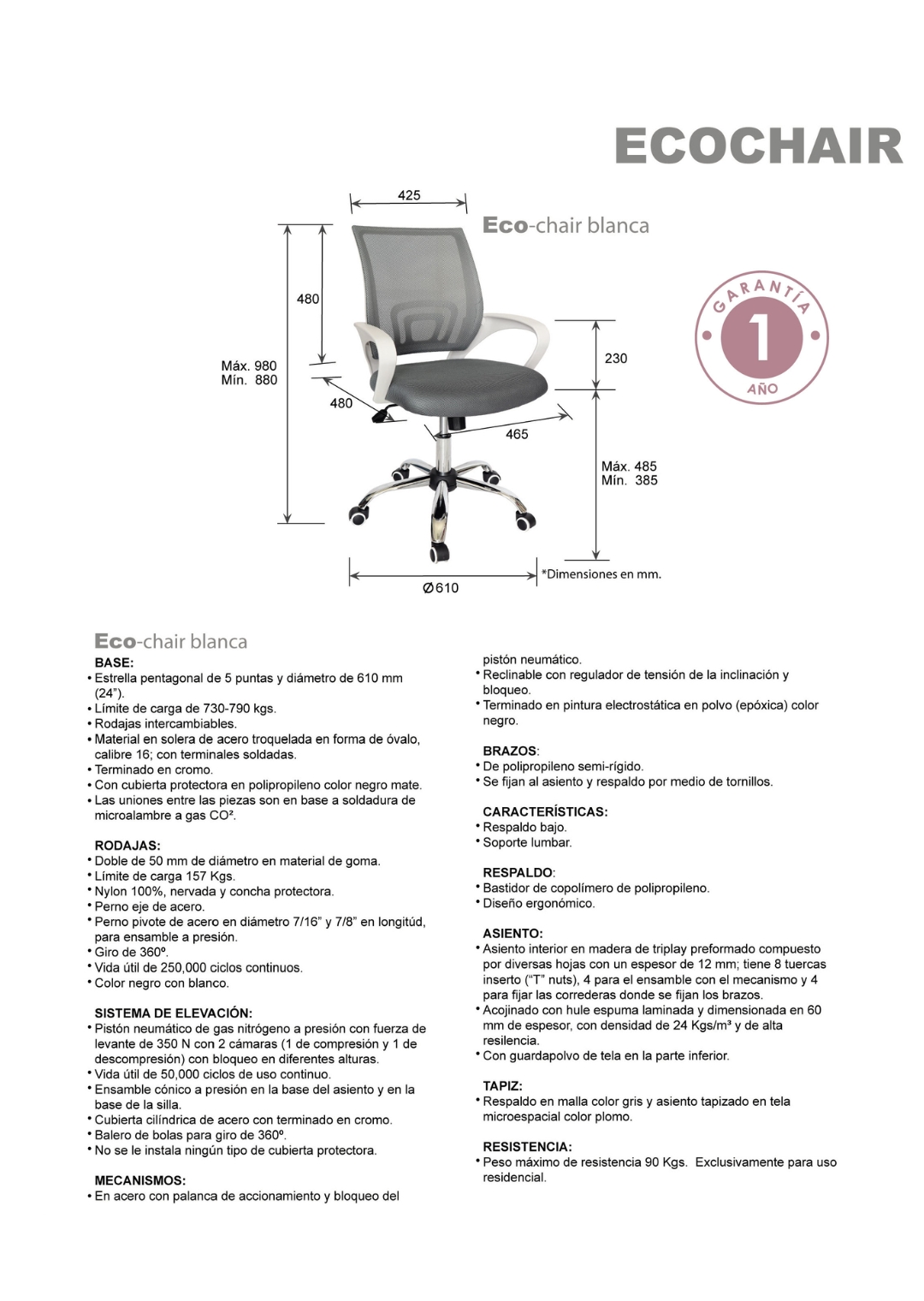 tapiz: respaldo en malla color gris y asiento en microespacial color plomo.