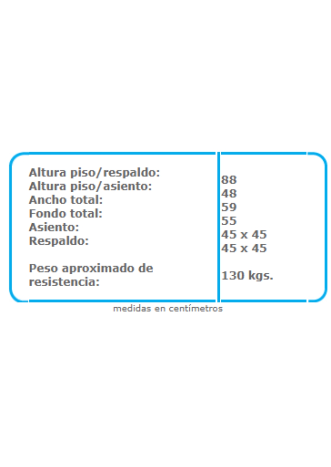 – Hule espuma en asiento 8 cms. de espesor d.30 kgs/m³ y respaldo 5 cms. de espesor d.20 kgs/m³.