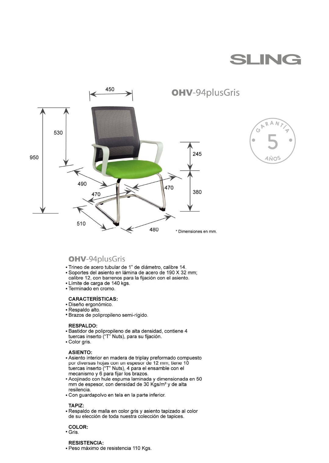 asiento: hule espuma laminado flexible con densidad de 30 kgs/m3 y alta resistencia.