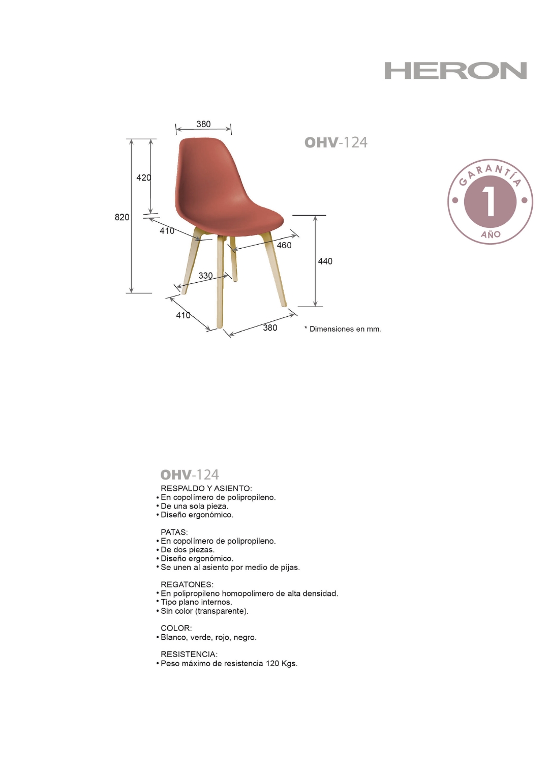 respaldo y asiento: de una sola pieza en polipropileno de alta resistencia y duración.