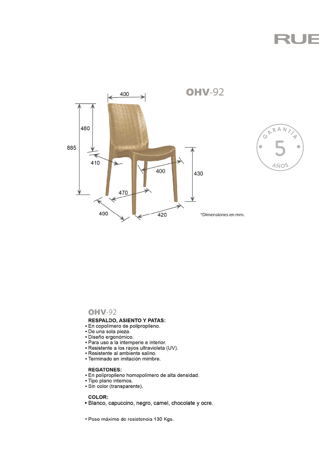 peso máximo de resistencia: 130 kgs.