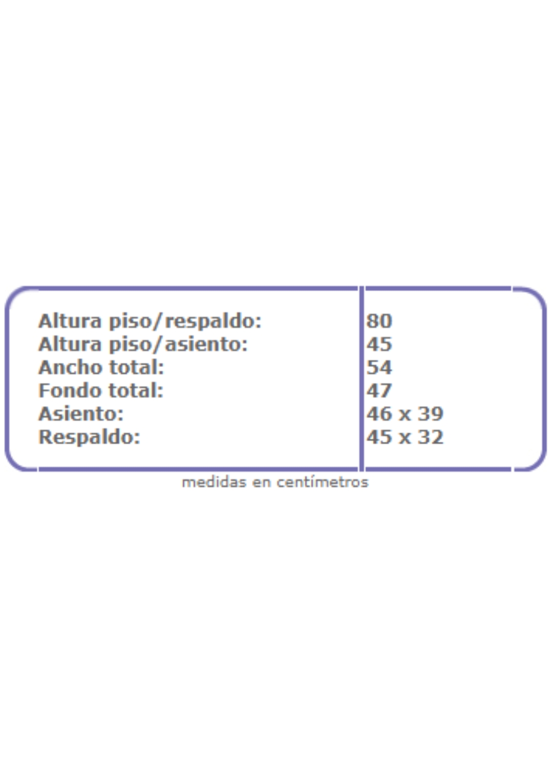 – Metalica, en respaldo de tubo redondo de 7/8” en cal. 20, con un proceso de planchado en su parte superior, largueros fabricados en tubo redondo de 5/8” cal. 18, para sujetar patas, respaldo y asiento, patas fabricadas en tubo redondo de 7/8” cal. 20 en forma de “U” invertida.