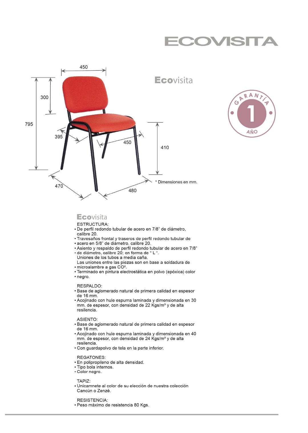 peso máximo de resistencia: 80 kgs.