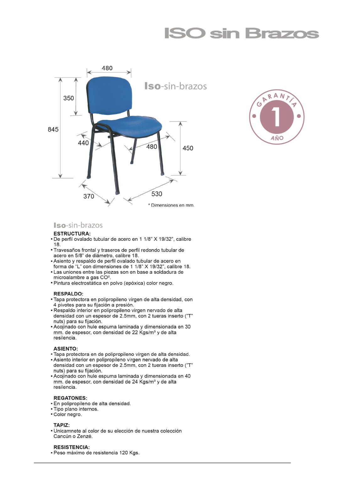 asiento y respaldo: hule espuma laminado flexible con densidad de 22 kgs/m³ en el respaldo y 24 kgs/m³ en el asiento, de alta resilencia. Unicamente al color de su elección de nuestra colección Cancún o Zenzé.