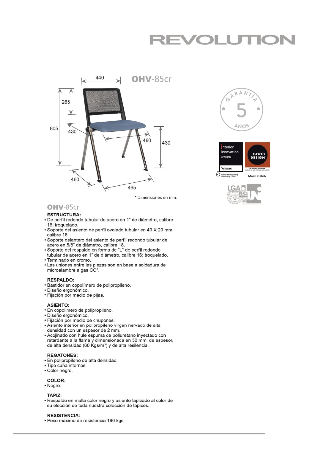 tapiz: respaldo en malla color negro y asiento tapizado al color de su elección de toda nuestra colección de tapices.