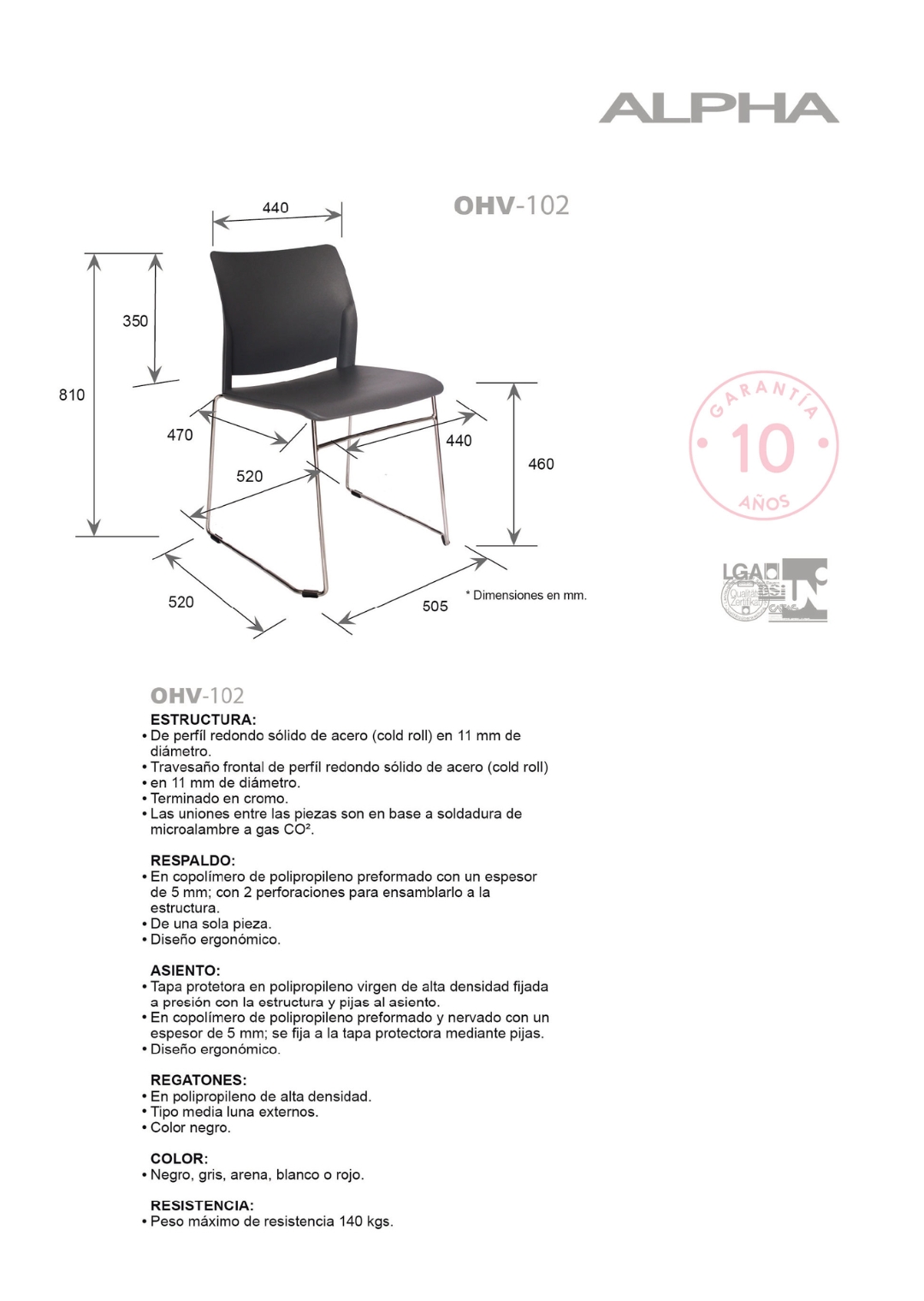 asiento y respaldo: en dos piezas en polipropileno de alta resistencia y duración.