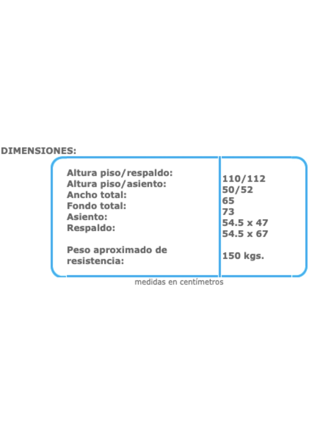 – Hule espuma en asiento 5 cms. de espesor d.30 kgs/m³, respaldo 4.5 cms. de espesor d.30 kg/m³.