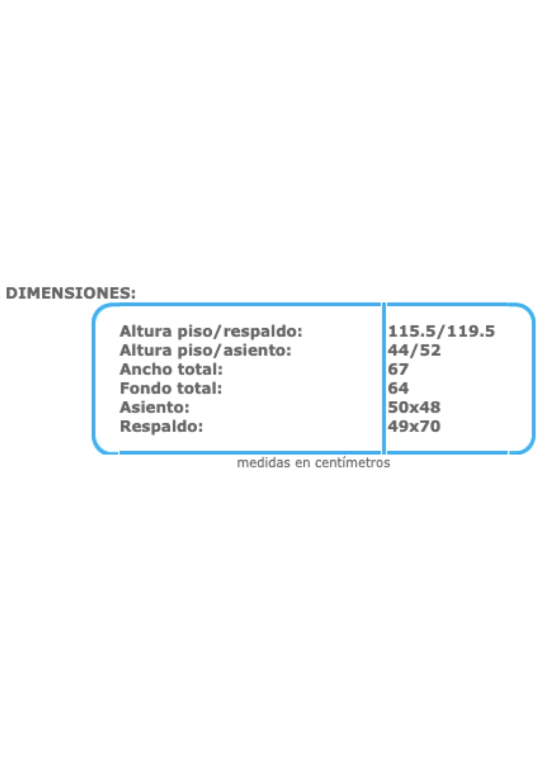 Hule espuma en respaldo de 6 cms., y en asiento de 7 cms. de espesor con densidad de 53 kgs./m³.