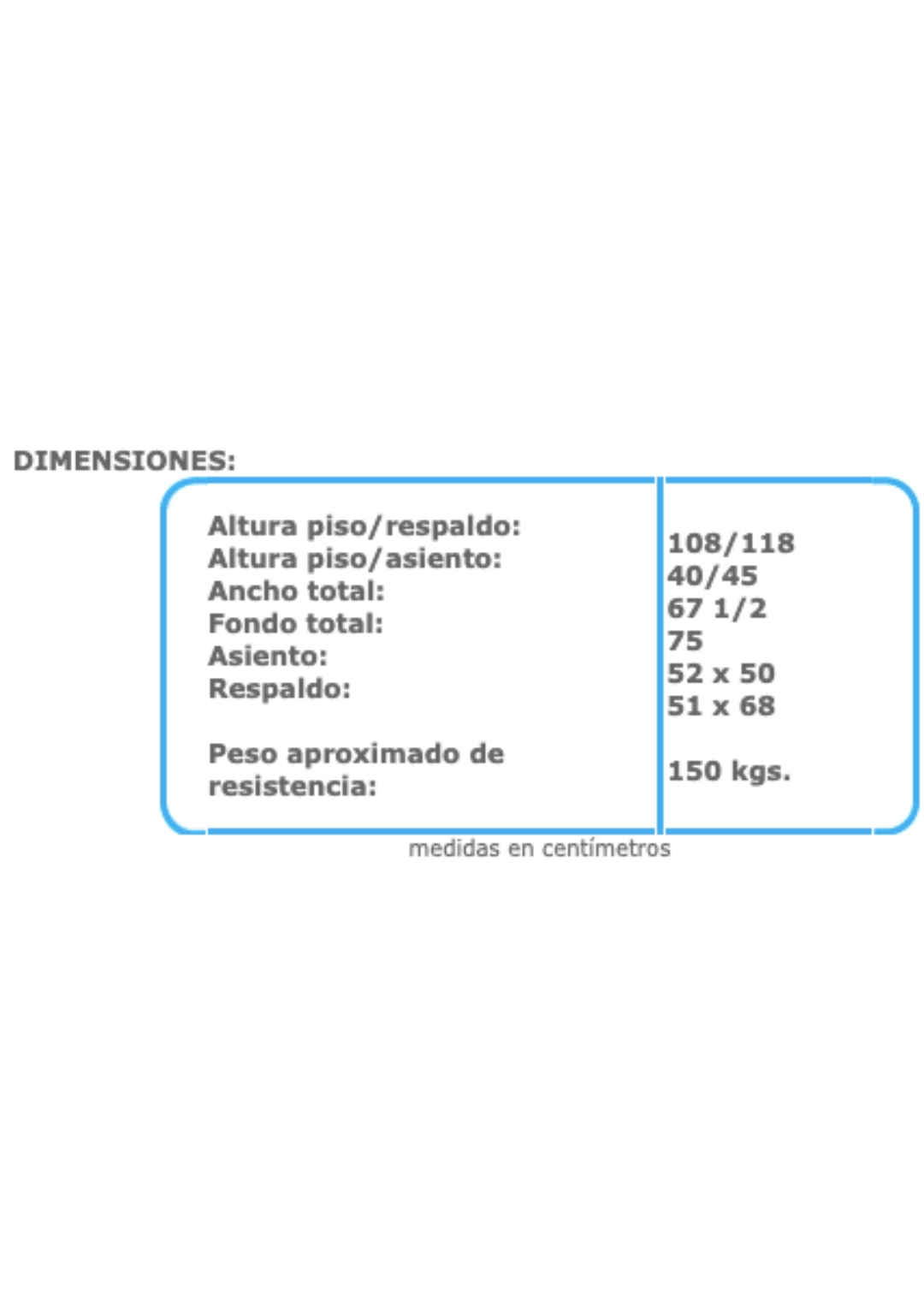 – Hule espuma en asiento de 8 cms. de espesor d.30 Kgs/m³, respaldo de 8 cms. de espesor d.20 kgs/m³.