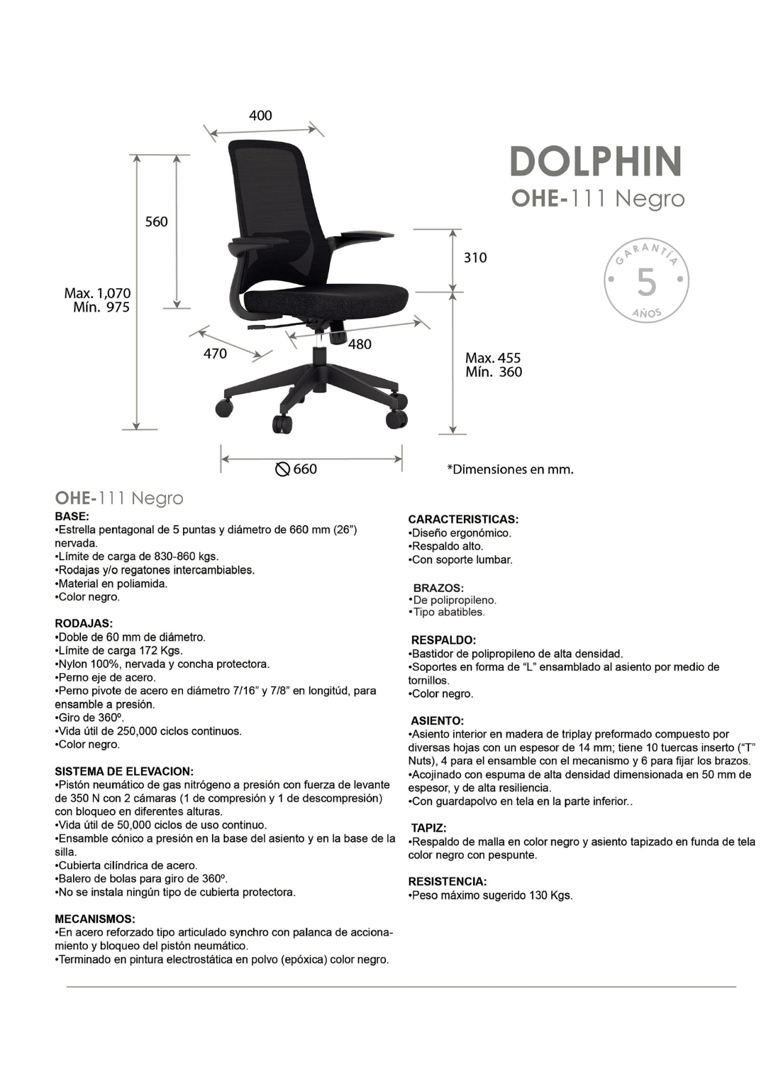 peso máximo de resistencia: 130 kgs.