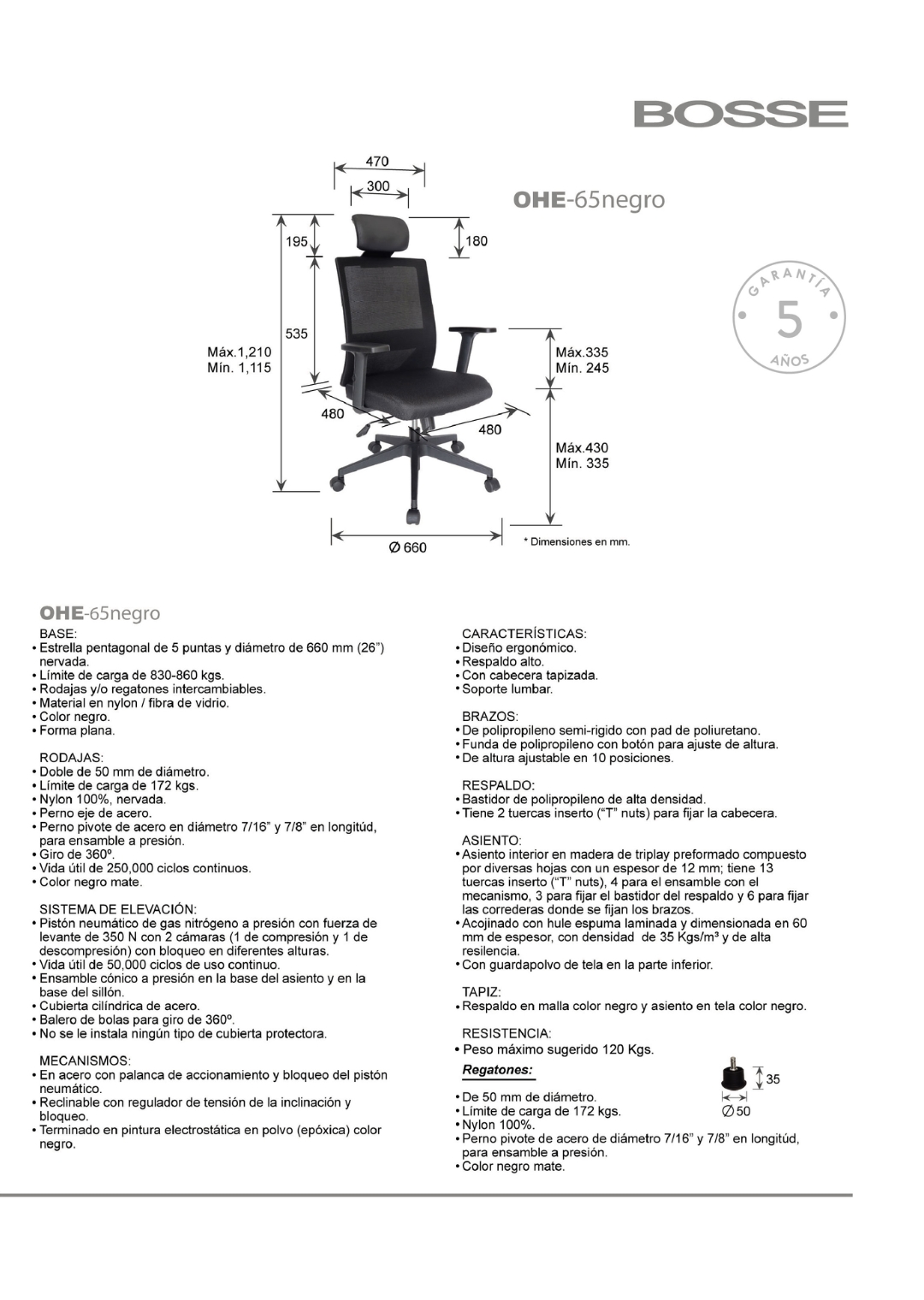 peso máximo de resistencia: 120 kgs.