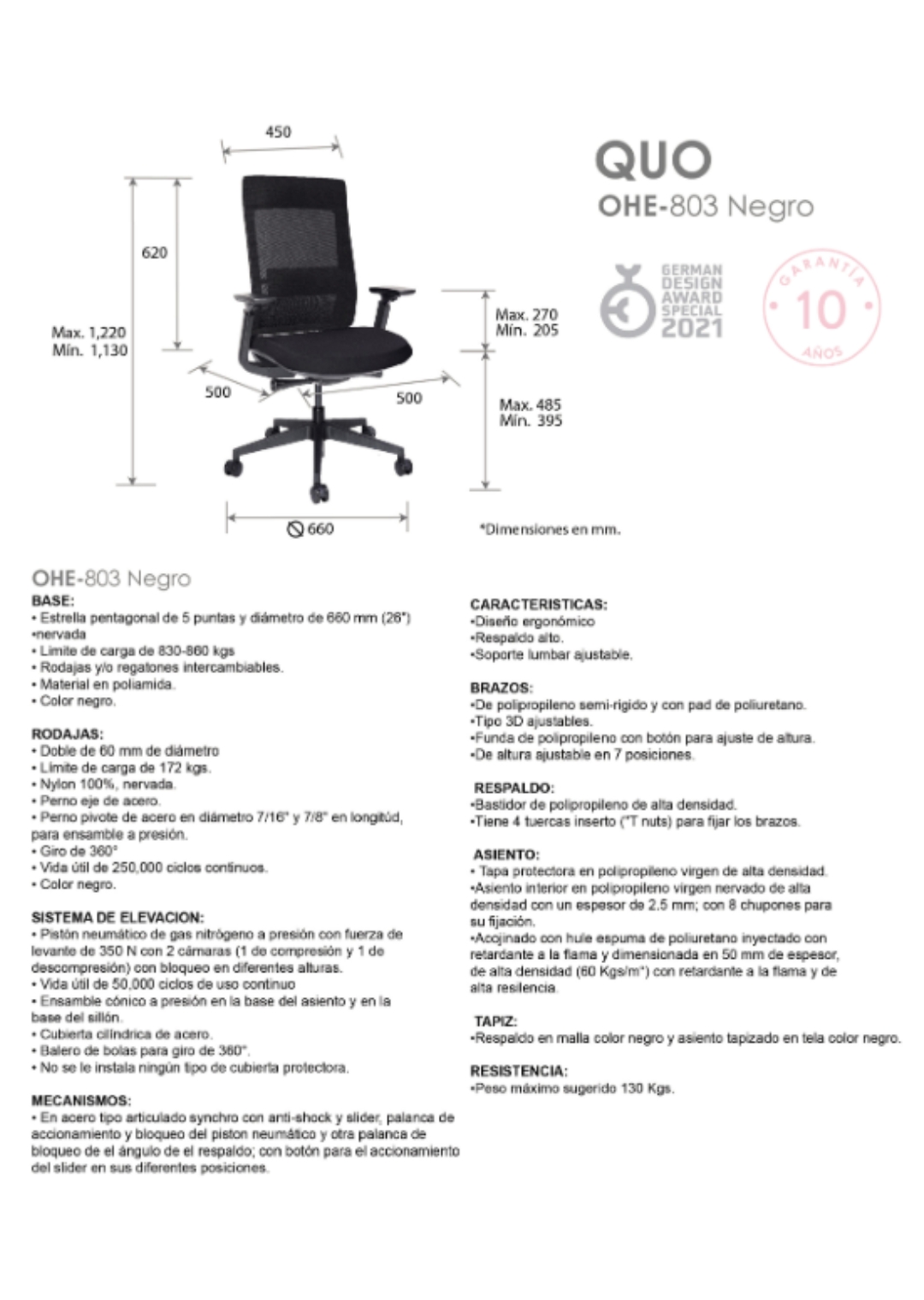 respaldo: en malla de diseño ergonómico y soporte lumbar ajustable.
