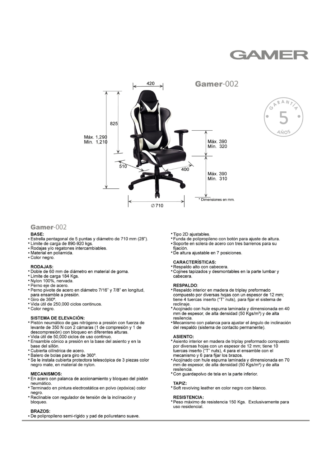 peso máximo de resistencia: 150 kgs. Exclusivamente para uso residencial.
